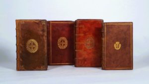 [MARSEILLE]. ENSEMBLE DE 4 OUVRAGES RELIES AUX ARMES DE MARSEILLE. - LE MAISTRE DE SACY. ESDRAS ET NEHEMIAS. Bruxelles, Fricx, 1798. - ELOGIA… (1640). Titre manquant. - TROGE POMPEI. HISTORIARUM PHILIPPICARUM. Ursellis, Sutori, 1602. - SANTOLII. OPERA. Paris, Thierry, 1698. Bon état général.