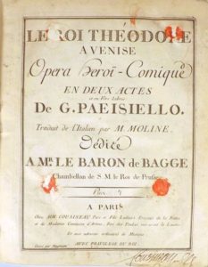 (MUSIQUE). PAEISIELLO (Giovanni). LE ROI THEODORE A VENISE. Opéra Héroï-comique en 2 actes. …