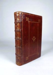 OFFICE DE LA SEMAINE SAINTE corrigé par le commandement du Roy. Nouvelle édition. Paris, Fosset et Chenault (vers 1695). In-8, maroquin grenat, double encadrement doré avec fleurs de lis aux angles, chiffre doré au centre des plats, dos à nerfs orné du chiffre L couronné, tranches dorées (reliure de l'époque). Exemplaire au chiffre de Louis XIV orné de 4 figures gravées en taille douce par Charles Fosset d'après Lefebure. Le frontispice manque, quelques frottis à la reliure. (O.H.R., 2494, fer n°16).