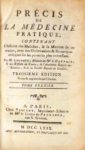 PETIT (J.L.). TRAITE DES MALADIES CHIRURGICALES ET DES OPERATIONS QUI LEUR CONVIENNENT. Paris, Méquignon, 1790. 3 volumes in-8, basane fauve, dos à nerfs orné (reliure de l'époque). Nouvelle édition mise au jour par M. Lesne, ancien directeur de l'Académie Royale de Chirurgie. L'illustration se compose d'un portrait et de 90 planches dépliantes d'instruments de chirurgie. Bon exemplaire, malgré de petits accidents aux reliures. On joint: - LIEUTAUD. PRECIS DE LA MEDECINE PRATIQUE. P., Vincent, 1769. 2 vol. in-8, veau de l'époque. Usures. - STATUTS ET REGLEMENS GENERAUX pour les communautés de Chirurgiens des provinces, donnés à Mably le 24 février 1730. P., Delaguette, 1758. In-4° de 105 pages, demi- chagrin bordeaux à coins du XIX°. ENSEMBLE 6 VOLUMES.