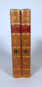 ROUSSELIN (Alexandre). VIE DE LAZARE HOCHE, Général des armées de la République. Paris, Desene, Barrois, an VI. 2 vol. in-12, demi-basane fauve, dos lisses, tranches jaunes (reliure de l'époque). Illustré d'un portrait du général en frontispice. Des bibliothèques M. Le comte de Vimar, pair de France (ex-libris) et Antoine Casenave, homme politique français,avec son ex-libris «Casenavii equitis». Galeries de vers avec manques aux dos.