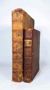 SPON (Jacob). RECHERCHES CURIEUSES D'ANTIQUITE, contenues en plusieurs dissertations sur les Médailles, Bas-reliefs, Statues, Mosaïques et Inscriptions antiques. Lyon, Thomas Amaulry, 1683. In-4°, basane brune, dos à nerfs orné (reliure de l'époque). Beau frontispice par Matthieu Ogier, et 73 figures, certaines à pleine page, gravées sur cuivre dans le texte représentant des objets antiques, médailles, sculptures, inscriptions, mosaïques, etc. Jacob Spon (1647-1685) est considéré comme le précurseur de la numismatique et l'un des fondateurs de l'archéologie moderne. Rousseurs éparses, accidents à la reliure, cachets. On joint: - SAINT AUBIN (J. de). HISTOIRE DE LA VILLE DE LYON ANCIENNE ET MODERNE avec les figures de toutes ses veües. - Histoire ecclésiastique de la ville de Lyon. Lyon, Coral, 1666. Complet des 7 planches dépliantes dessinées et gravées par Israël Silvestre vers 1650. Exemplaire usé, rousseurs et cernes, 1 planche déchirée sans manque, les frontispices sont manquants, cachets. ENSEMBLE 2 VOLMES.