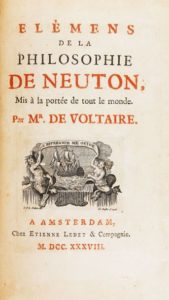 VOLTAIRE. ÉLEMENS DE LA PHILOSOPHIE DE NEUTON. Amsterdam, Etienne Ledet 1738. In-8 de [4]-399-1 …