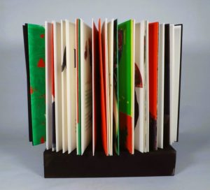 BAUDELAIRE (Ch.). LES FLEURS DU MAL. (Strasbourg), Bibliophiles de l'Est 1985. In-4°, en feuilles, couverture en découpe, percaline noire, étui (reliure de l'éditeur). 60 pages du texte montées en accordéon et abondamment illustrées de photo-montages en couleurs de R. Bezombes. L'Architecture de l'ouvrage fut réalisée par Michel Kieffer. A l'état neuf.
