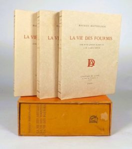 MAETERLINCK (Maurice). LA VIE DES ABEILLES. - LA VIE DES TERMITES. - LA VIE DES FOURMIS. Paris, L'artisan du livre, 1930. 3 volumes in-8 brochés, non rognés, sous étui. 32 gravures au burin par Laboureur. Exemplaire hors commerce sur vélin de Rives (XLIII).
