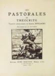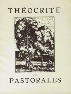 THEOCRITE. LES PASTORALES, traduites intégralement par Gabriel Soulages. Paris, Kieffer, 1923. In-4° broché, couverture imprimée. Bois originaux de J. B. Vettiner. Exemplaire n° 244 sur velin teinté.