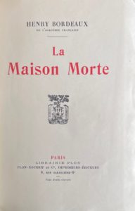 - La Maison Morte. Paris, Plon-Nourrit, 1922. In-8, demi-maroquin havane à grain long, dos lisse, titre doré au dos, non rogné, couverture et dos. Édition originale, tirée à 300 exemplaires numérotés, celui-ci, UN DES 100 EXEMPLAIRES DE TETE SUR HOLLANDE. Non coupé. Perret [0592-A]._