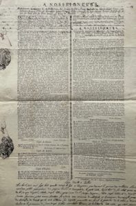 Chambéry, Gorirn, 1787. 1 f. in-folio, en feuille. L'ordonnance rendue par le Sénat de Savoie enjoint aux exploitants de la mine de la Thuile de "ne faire aucun ouvrage, ou paiement pour achat, journées ou autres causes relatives à la Minière, sans l'approbation du Châtelain de la Thuile".