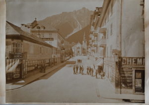 Vers 1900. Formats variés. Tirages albuminés ou au bromure d'argent, montés ou non sur carton, parfois à 2 vues par carton avec légendes manuscrites, dont 3 en couleurs. Au total 89 photographies originales témoignent de la vallée de Chamonix à la fin du XIXe siècle et au début du XXe siècle : le bourg de Chamonix, la Mer de Glace, l'ascension du Mont-Blanc, les abords du refuge Torino, le passage de la Tête Noire, etc. En particulier :