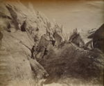 - Attribué à Auguste COUTTET : Escalade du Grand Gendarme du Grépon, tirage argentique, vers 1900, 18 x 24 cm. Audisio, Fotografie della montagna, p. 104.