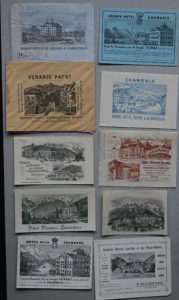 HOTELS DE CHAMONIX — Cartes de visites et publicités d'hôtels à Chamonix.