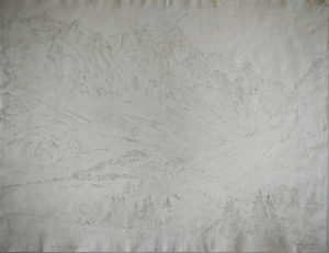 Genève, vers 1800. Dessin à la mine de graphite, signé à l'encre en bas à droite. En feuille, 49,5 x 38 cm. Dessin original finement réalisé, de grand format. Quelques indications de noms de lieu au crayon (Grande Jorasse...).