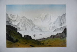 - La Mer de glace et la vallée de Chamonix (lithographie en couleurs de Félix Benoit, Nice et Savoie, 1864, 32,5 x 21,5 cm, quelques rousseurs).