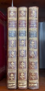 Nouvelle édition, corrigée et augmentée d’un troisième volume. Genève, Paul Barde, 1785. 3 volumes in-8, reliure pleine basane marbrée, dos lisse orné, pièces de titre et de tomaison (Reliure de l'époque). Première édition collective des descriptions des Alpes Pennines et du massif du Mont-Blanc, parues séparément en 1781 pour les Alpes Pennines (dont c'est ici la 3ème édition) et en 1785 pour le Mont-Blanc. Elle est illustrée d'une carte dépliante et de 13 vues hors texte gravées à l'eau-forte par Moitte d'après les dessins de l'auteur.