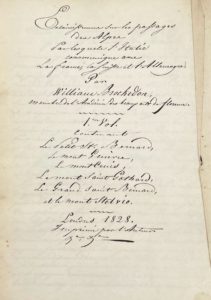 BROCKEDON (William) et DELUC (Jean-André) — (Manuscrit) Éclaircissements sur les passages des Alpes par lesquels l'Italie communique avec la France, la Suisse et l'Allemagne.