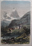 - Une belle gravure coloriée de Zermatt et du Cervin en 1865 (25,5 x 36 cm).