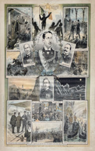 Milan, E. Manenti, vers 1900. Grande affiche lithographiée en couleurs sur papier par M. Dovera, 56 x 74 cm. Cette affiche relate en images l'expédition au pôle nord de Louis-Amédée de Savoie, duc des Abruzzes, fils d'Amédée Ier, neveu du Roi Umberto Ier. L'expédition dirigée par le duc des Abruzzes a embarqué sur la "Stella Polare" et atteint en traîneau à chiens la latitude de 86°34 N, ce qui constituait un record pour l'époque.