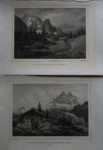 - 2 gravures en noir, vers 1870 : Pont vers Cortina d'Ampezzo et Monte Cristallo.