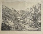 s. l., vers 1830. Lithographie, 48 x 35 cm. Magnifique lithographie animée de deux personnages, représentant la vallée de Gressoney avec en arrière-plan le Mont-Rose, d'après un dessin de Théophile Ladner. Importantes mais habiles restaurations pour combler des faiblesses du papier, principalement en marges. Très rare et précieuse estampe. Peyrot I - 277.