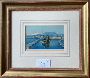Gouache originale, 9,5 x 6 cm, encadrée. Belle vue, à la manière de Dikenmann, vers 1860.