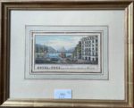 - Hôtel du Nord près de la porte Cornavin à Genève, lithographie aquarellée, 13,2 x 7,3 cm, par Spengler & Cie à Genève, vers 1830, encadrée. André-Philibert Spengler (1793-1866) a introduit la lithographie à Genève en 1824.