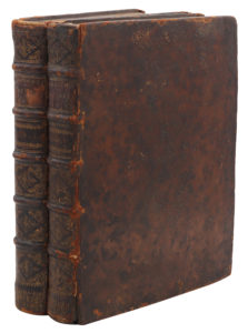 Leyde, Pieter Van der Aa, 1723. 4 parties en 2 volumes in-4, reliures pleine basane marbrée, dos à nerfs ornés, pièces de titre et de tomaison (Reliures uniformes de l'époque). Seconde édition augmentée et la première complète des voyages de Johann Jakob Scheuchzer dans les Alpes suisses. L'édition originale avait paru à Londres de 1702 à 1708, en trois tomes.