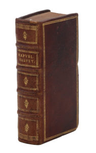 Leyde, Elzeviers, 1627. In-24, maroquin rouge, double filet, dos orné, tranches jaspées Reliure du XIXe siècle 535 pp. (titre gravé compris) et [8] ff. de tables
