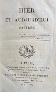- Émile DUPRé DE SAINT MAUR : Hier et aujourd'hui. Satires. Paris, de l'imprimerie d'Anth. Boucher, 1819.