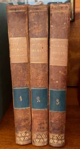 Paris, Gide Fils, 1825. 3 volumes in-8°, reliures demi-veau blond raciné avec coin, pièces de titre et de tomaison, tranches jaunies. Première édition, illustrée de 4 lithographies hors-texte et d'une carte dépliante (tome I), 6 lithographies hors-texte (tome II) et 5 lithographies hors-texte (tome III). Les 15 vues ont été lithographiées par Engelmann d'après Delécluse, de Laborde, Girardin, de Montesquieu, de St Aignan et Roques.