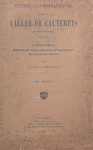 - Du même : Excursions topographiques dans la vallée de Cauterets (Hautes-Pyrénées) : Panoramas extraits des tours d'horizon photographiques des principales stations, IIme partie. Cauterets, Cazaux, 1920. En feuilles, dans une chemise imprimée. Illustré de 21 panoramas photographiques imprimés en recto seulement (Dendaletche parle de 20 feuilles imprimées recto-verso) ; les nôtres correspondent aux 21 premières planches de la liste figurant sur le portefeuille (avec quelques nuances dans les titres des planches). Chemise déchirée et roussie. Les planches sont en parfait état. Labarère 1031 : « comprend 40 panoramas en 20 feuilles » - Dendaletche 1263._