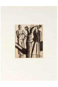 DUPAS Jean (1882 - 1964) Élégantes Dessin à l'encre de Chine et crayon sur papier contrecollé sur carton, signé et daté 1931 en bas à droite. 8 x 14 cm - sous passe-partout