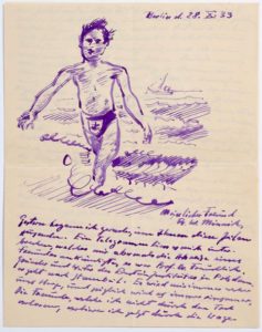 PECHSTEIN Max (1881 - 1955) L.A.S. « Max » avec DESSIN, Berlin 28.X.1923, à Walter MINNICH; 3 pages in-4 à l'encre violette; en allemand. Lettre illustrée d'un grand dessin en tête. Au médecin et collectionneur d'art allemand Walter Minnich, sur ses malheurs personnels et les angoisses nées de la montée du nazisme. Pechstein venait d'être informé qu'un de ses amis, l'astronome allemand Erwin Finlay-Freundlich (1885-1964, collaborateur d'Einstein et directeur d'un observatoire à Potsdam), avait été contraint de quitter l'Allemagne. et avait émigré à Istanbul. L'un des frères de Pechstein décède, suite à d'anciennes blessures de guerre, et il doit lui-même s'occuper de sept proches avec un revenu en baisse constante... Même si les moments difficiles le submergent parfois, le bonheur sans nuages de nombreuses heures de travail l'élève vers le ciel... Le grand dessin en tête de la lettre représente un jeune homme qui sort de la mer d'un pas énergique
