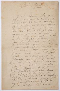 RENOIR Auguste (1841 - 1919) L.A.S. « AugRenoir », Paris Jeudi, à son ami et mécène Paul BÉRARD; 1 page et demie in-8. Il a commencé ses recherches d'appartement: « Je suis allé au 29 rue des Martyrs, je n'ai pas vu l'appartement, le concierge n'ayant rien pu me dire au sujet du déménagement de votre ami ce qu'il y a de certain, c'est qu'il l'habite encore »... Il cherche autre part en attendant mais n'a encore rien trouvé... Il est allé revoir un tableau: « Je suis allé ce matin chez Ignace. J'ai trouvé le portrait acroché dans le salon à la grande satisfaction de tout le monde. Charles a trouvé que c'était un peu... (Cabanel). [...] Les cailles sont arrivées à bon port et vous coûtent 75 centimes »..