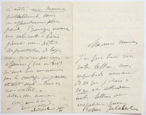 TOULOUSE-LAUTREC Henri de (1864 - 1901) L.A.S. « H », [Paris juin 1892], à SA MERE; 4 pages in-8. Lettre à sa mère. Il a bien reçu sa lettre: « Mon inquiétude venait de ce que j'étais à sec, et attendais votre lettre avec impatience pour taper Jalabert, et vous n'avez guère eu l'air de comprendre mon impatience; la plus belle charité commence par soi-même ». Quant à Respide (château familial dans le Bordelais), « il n'y a rien à faire, laissez vos sentiments vous guider [...]. Je suis, malheureusement, trop sceptique pour croire à la reconnaissance, mais il ne faut pas oublier que nous avons trouvé à Respide ce que nous avons vainement cherché ailleurs, un home. Je lutte contre la pluie et les modèles, sans aigreur comme sans enthousiasme ». Puis il parle d'un projet de déménagement avec Bourge, rue Mansart: « J'aurai une petite augmentation de loyer, mais ça n'est pas une affaire (200 ou 300 F) qui sont bien compensés par le coulage que j'aurais étant seul. - Tout ça nous vieillit »...