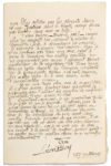 BLOY Léon (1846 - 1917) L.A.S. « Léon Bloy », Paris 28 février 1888, à Maurice de FLEURY; 2 pages in-8. Lettre pathétique du Mendiant ingrat, superbement calligraphiée. Il a eu son adresse par HUYSMANS. Son âme est « triste & lasse usque ad mortem », mais il se réjouit et priera pour Maurice et sa fiancée... « J'ai connu un temps, déjà lointain, de bras en croix & de larmes saintes & de vie pure, où j'aurais eu plus de confiance en parlant à Dieu. Je vivais alors dans un perpétuel ouragan de Joie & le monde n'apparaissait autour de moi, dans le brouillard, que comme un perpétuel argument de sanglots et d'obsécrations. J'avais à mon côté, pour m'envelopper & m'enclore dans les ivresses de l'Eucharistie, un être inouï dont j'ai profané le souvenir en essayant de le peindre avec les pigments terreux de la littérature [allusion à La Femme pauvre]. Je n'étais pas, comme maintenant, crevé de chagrins effroyables, harcelé, traqué, acculé à la plus fragile cloison de mon libre arbitre par les aboyants désirs d'une Justice dont le besoin enragé finira par tourner chez moi en folie. J'étais pauvre, - Dieu le sait ! - encore plus qu'aujourd'hui, indigent à rebuter le fumier de Job, à décourager sa vermine, j'assumais la pénurie des espaces. Mais je n'en souffrais pas dans mon âme, ayant à peine le soupçon des réalités sensibles & ne comprenant pas encore l'effrayant Décret symbolique de la répartition des biens terrestres, en vertu duquel les désignés intendants de la Compassion divine s'en vont, toujours, les mains vides & le coeur amer, sous d'inexplicables cieux. Je ne suis donc plus rien de ce que j'étais, il y a des années, lorsque, dans ma prière, je présumais avec l'audace des simples, la complicité formidable d'une armée d'élus. [...] je ne suis pas de ceux qui croient à la vanité de souffrir, surtout quand on souffre pour de grandes choses & qu'on souffre exorbitamment ! »..