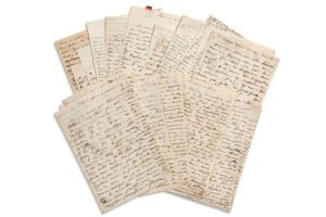 [CHATEAUBRIAND François-René de]. DURAS Claire de Kersaint, duchesse de (1777 - 1828) 19 lettres autographes, Saint-Cloud et Paris janvier-avril [1821], à François de CHATEAUBRIAND; 90 pages in-8 (légères mouillures à qqs lettres). Importante correspondance à son « frère » Chateaubriand, ambassadeur à Berlin, pleine de conseils de conduite pour le « vieux diplomate », de nouvelles des Chambres et de ses propres démarches pour que son ami se rende au Congrès de Leybach, retrouve son ministère d'État, etc. On y lit des plaisanteries et des brouilles amicales, parmi de fréquentes mentions de Pasquier, ministre des Affaires étrangères; Rayneval, sous-secrétaire d'État aux Affaires étrangères; Corbière, ministre sans portefeuille; et Villèle, ministre et secrétaire d'État, membre du Conseil. 4 et 5 janvier. La nomination de Saint-Lar y comme questeur a « fait un grand émoi dans le parti royaliste, Villèle et Corbière se sont plaints, et le Roi leur a dit qu'il avoit eu des raisons particulières [...]. On dit que cette raison est la demande que fit ce M. de St Lary a la chambre en 1815 pour le payement des dettes du Roi »... Elle prie d'assurer le Grand Duc Nicolas de son attachement... 11-12 janvier. Pour obtenir que Chateaubriand soit admis au Congrès de Laybach, elle a écrit à Rayneval: « il est plus important que personne aux affaires étrangeres, et pendant les chambres, il est le vrai ministre. M. Pas quier entre la chambre son rhumatisme et le Conseil en a plus qu'il n'en peut porter. C'est pour Laybach que Villèle et Corbière vont se montrer, car ce sera une chose decidée en Conseil tres probablement »... Elle raconte avec indignation l'évasion du capitaine Nanty, « le Quiroga de la conspiration », et de deux autres; « le plus gravement compromis est M. d'Argenso n »... 18-19 janvier. Humbol dt est d'avis que le Roi de Prusse ne s'opposera pas à ce que Chateaubriand le suive à Laybach: les Empereurs de Russie et d'Autriche se sont laissés suivre par MM. de La Ferronays et de Caraman... Elle s'interroge sur l'application des principes antirévolutionnaires et antilibéraux du Congrès: « On dit que tout se terminera ici pour Naples sans combat et sans violence. Moncenigo a écrit qu'on cèderoit quelque chose des deux côtés, et qu'on feroit un accord, mais souffrirat- on les garnisons ? Et sans cela comment marchera la plus belle constitution du monde »... Il faudrait une armée fidèle sur laquelle le Roi de Naples puisse s'appuyer, « dans ce volcan de révolution où l'on bégaie l'alphabet de 93, et où l'on en est à faire un bataillon thermopylien par souscription »... Aujourd'hui, « l'accord de la libéralité et de la monarchie » est la seule doctrine soutenable; on se rallie à ceux qui combattent l'anarchie et les révolutions: « ce fut tout le secret de Bonaparte »... 28 janvier. Nouvelle explosion hier aux Tuileries: « Madame n'a pas eu peur du tout. On la dit grosse, voila ce qui pousse les Jacobins au désespoir et les fait entreprendre ces horreurs. [...] On n'a point arrêté le nouveau Louvel »... La Chambre des Pairs, où « il y a 50 ou 60 défenseurs des conspirations si chauds et si zelés qu'on croiroit qu'ils défendent leur propre cause », a rejeté le supplément de réquisitoire et mis en liberté dix des prévenus... Rumeurs diplomatiques sur le projet anglais de diminuer les « dépenses de Ste Hélène »; Tierney a ajouté « qu'on donnera la liberté au prisonnier qui désormais ne peut plus avoir d'inconvénient. Là dessus grande allarme à la légation française », mais c'était « une plaisanterie à l'anglaise »... 1er février. L'alarme des royalistes est communicative, et fait blâmer les « vilains ultras »: « Quand on voit tout cela on se désespère car il faut être incorrigible pour n'être pas corrigé par Louvel. Nous faut-il une seconde leçon du même genre ? »... Échos d'une discussion dans le Comité secret (De Serre insulté par le général Foy)... 2-4 février. Affaires d'Angleterre, suivant M. Canning... « M. de Tall eyra nd est devenu libéral. Cherchez quel intérêt il peut avoir à cela ? »... Quant au Congrès, des gens bien instruits disent que « c'étoit nous, et nous seuls qui avions tout entravé jusqu'ici. [...] L'empereur Alexandre s'est prononcé en dernier lieu tres vivement, et a dit qu'il marcheroit en personne à Naples si cela étoit nécessaire »... 8 février. Brochure de Fiévée [Ce que tout le monde pense, ce que personne ne dit]: « Vous y pourrez juger l'esprit et les espérances de cette extrême droite »... 11 février. Les gens ne veulent point de Chateaubriand à Laybach: on craint que les plénipotentiaires Blacas, Caraman et La Ferronays ne soient « blessés de l'arrivée d'un homme supérieur qui attireroit les regards ». Elle espère que le Roi de Prusse ne s'y rendra pas, mais il est possible qu'il rejoigne les Empereurs à Naples: « il est de la nature des rois de recommencer, c'est l'habitude de leur vie, ils voudront mettre tout