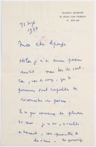 COCTEAU Jean (1889 - 1963) L.A.S. « Jean Cocteau », Santo-Sospir 11 septembre 1957, à Jacques …