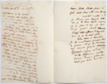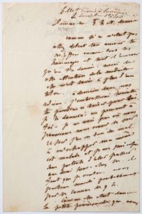 FLAUBERT Gustave (1821 - 1880) L.A., [Paris] Dimanche [29 novembre 1846], à Louise COLET; 2 pages in-8. Billet amoureux. Une note de Louise Colet indique, en tête (avec une erreur de date): « billet remis à la main 2 décembre 1846 ». «Comme si ce n'était pas assez de tout ton amour tu m'offres encore tous les hommages et tout l'amour qu'on t'a donnés. Merci de cette attention de la médaille, elle m'est sacrée à plus d'un titre. À demain donc nos adieux. J'embrasserai Henriette [fille de Louise] tu prendras ce baiser pour toi. Je le donnerai en pensant à toi. Je ne vois pas où nous pourrions nous revoir le soir. Ce soir j'ai eu bien du mal à m'échapper ma mère est malade et je me suis enfui sous prétexte d'aller passer une demi-heure chez M. [Maxime Du Camp]. Il faut que je rentre. Nous partons mardi probablement par le convoi de 9 h. Comme elle était douce la petite promenade que nous avons faite l'autre jour, à pied seuls dans cette rue déserte... Aussitôt rentré à R. [Rouen] je t'écris une longue lettre où je te dirai tout ce qu'ici je ne puis te dire. Je suis trop pressé. M[axime] est tellement occupé de ses affaires d'argent que je ne le vois pas. Adieu donc à demain. Je te reconduirai jusque sur le perron et je te donnerai une dernière poignée de mains réprimée. Adieu adieu mille tendresses, mille baisers, et encore plus du coeur que de la bouche. » Correspondance (Pléiade), t. I, p. 409