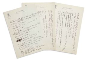 GUITRY Sacha (1885 - 1957) L.A.S. en vers (minute signée « S »), [1937 ?], au petit-fils de G. Lenôtre; 1 page petit in-4, en-tête Villa d'Este, Cernobbio, Lago di Como. Épître au petit-fils de l'historien Gosselin Lenôtre, que Guitry admirait et consultait parfois. Cette jolie pièce se compose de 20 vers: « Vous êtes le petit-fils de monsieur Lenôtre ? Eh ! Bien, alors, soyez des nôtres ! Vous avez très envie, Me dites-vous, de me connaître ? J'en suis ravi »... Il l'invite le jeudi 3 à midi: « C'est toujours à midi Que je reçois les petits-fils des historiens »
