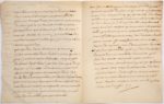 VOLTAIRE (1694 - 1778) L.A.S. « V », Potsdam 3 octobre 1752, à Marc-Pierre de Voyer comte d'ARGENSON; 3 pages in-4. Belle lettre accompagnant la remise du manuscrit de l'Histoire de la guerre de 1741. [Ce manuscrit, intitulé Histoire de la guerre dernière, est conservé à la bibliothèque de l'Arsenal (Ms-4773). Le texte fut publié, d'après une autre copie, en 1755, sans l'assentiment de Voltaire, qui ne voulait pas le voir publié de son vivant.] « Monsieur Le Baillif, mon camarade chez le roy et non chez le roy de Prusse, vous remettra monseigneur le tribut que je vous dois. L'histoire de la dernière guerre vous apartient. La plus grande partie a eté faitte dans vos bureaux et par vos ordres. C'est votre bien que je vous rends. Jy ai ajouté des lettres du roy de Prusse du cardinal de Fleuri qui peutetre vous sont inconnues et qui pouront vous faire plaisir. Vous vous doutez bien que j'ay eté dailleurs a portée d'apprendre des singularitez. Jen ay fait usage avec la sobrieté convenable, et la fidélité d'un historien qui nest plus historiografe. Si vous avez des moments de loisir, vous pourez vous faire lire quelques morceaux de cet ouvrage. J'ay mis en marge les titres des evenements principaux afin que vous puissiez choisir. Vous honorerez ce manuscrit d'une place dans votre biblioteque, et je me flatte que vous le regarderez comme un monument de votre gloire et de celle de la nation en attendant que le temps qui doit laisser meurir touttes les veritez permette de publier un jour celles que je vous présente aujourduy. Qui eut dit, dans le temps que nous etions ensemble dans l'allée noire, qu'un jour je serois votre historien et que je le serais de si loin ! Je scai bien que dans le poste ou vous etes votre ancienne amitié ne pourait gueres se montrer dans la foule de vos occupations, et de vos dépendants; que vous auriez bien peu de moments à me donner; mais je regrette ces moments et je vous jure que vous m'avez causé plus de remords que personne. Ce n'est peutetre pas un hommage a dédaigner que ces remords d'un homme qui vit en philosofe auprès d'un tres grand roy, qui est comblé de biens et d'honneurs aux quels il n'aurait osé pretendre, et dont l'ame jouit d'une liberté sans bornes. Mais on aime malgré qu'on en ait une patrie telle que la notre, et un homme tel que vous. Je me flatte que vous avez soin de votre santé porro unum est necessarium. Vous avez besoin de regime. Vous devez aimer la vie. Soyez bien persuadé qu'il y a dans le chatau de Potsdam un malade heureux qui fait des voeux continuels pour votre conservation. Ce n'est pas qu'on prie Dieu ici pour vous. Mais le plus ancien de tous vos serviteurs s'interesse a vous, a votre gloire a votre bonheur, a votre santé avec la plus respectueuse et la plus vive tendresse. » Correspondance (Pléiade), t. III, n° 3318