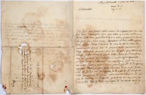 BERNOULLI Daniel (1700 - 1782) physicien L.A.S. « Daniel Bernoulli », Bâle 10 juillet 1746, à Charles de LA CONDAMINE; 3 pages in-4, adresse (mouillures et petits trous avec perte de quelques mots). Il a bien reçu la relation de son voyage en Amérique et l'en remercie: « c'est un ouvrage fort interessant, instructif et agreable ». Il le félicite sur son « heureux retour d'un si grand, penible et dangereux voyage ». Il aimerait connaître « la regle de M. BOUGUER, votre compagnon de voyage, pour calculer l'elevation du sol par la hauteur du barometre, que je ne me souviens pas d'avoir lue dans les divers ouvrages de cet illustre savant, je suis curieux de savoir si cette regle satisfait à l'observation, que Mr de L'Isle m'a communiquée autrefois, et qui porte qu'à la hauteur de 13158 pieds le barometre s'est tenu à 17 pouces et 5 lignes pendant que sur la surface de la mer, il se tenoit à 27 pouces 10 lignes. La regle que j'ai donnée page 217 de mon Hydrodynamique satisfait parfaitement à cette observation », et il voudrait savoir si elle satisfait aux observations faites en Amérique. Il en vient aux observations faites lors de la descente de l'Amazone, sur les flux et reflux du fleuve, notamment au détroit de Pauxis et demande des précisions... Etc. La Condamine a porté quelques annotations de sa main sur la lettre