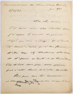 GAULLE Charles de (1890 - 1970) L.A.S. « C. de Gaulle », « Commandement des chars d'une Armée. Sect. 100 » 8 novembre 1939, à son ami Jean AUBURTIN; 2 pages in-4 (signature repassée à l'encre noire). Au début de la guerre de 1939. Condoléances à son ami qui vient de perdre sa mère, dont il avait pu « éprouver sa bonté et sa bienveillance ». Il va recommander Auburtin pour un poste d'interprète d'anglais. « Rien de nouveau par ici; nous pourrons commencer la guerre active seulement quand nous aurons des moyens, et vous savez lesquels »..