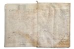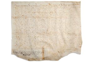 PARCHEMINS 2 Grands parchemins, Sourdéac (Morbihan) août 1630; in-plano. Actes passés devant la cour de Sourdéac et concernant Guy de RIEUX, seigneur de Sourdéac. On joint un acte d'échange de 1573; plus un acte notarié de 1698; et 3 fragments