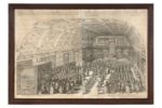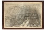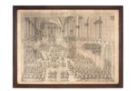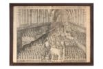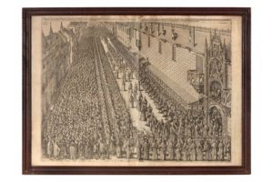 [GRAVURE]. [LORRAINE]. LA RUELLE (Claude de) [Extrait de: Dix grandes Tables contenantes les pourtraict des ceremonies, honneurs et pompe funèbres, faitz au Corps de feu Serenissime Prince Charles 3... Nancy, s.n., 1611]. Ensemble de 7 planches gravées sur cuivre, appartenant à la suite de 10 planches illustrant cet ouvrage destiné à décrire la pompe funèbre qui suivit le décès du prince Charles III de Lorraine. Claude de La Ruelle, conseiller d'État, secrétaire des commandements et finances du duc de Lorraine, auditeur des comptes de Lorraine, fut à cette occasion le commanditaire et le maître de cérémonie. C'est d'après ses dessins que ces planches ont été gravées par Friedrich Brentel, la perspective par Jean de La Hière, et publiées par Hermann de Loye. Sous verre et 7 cadres de style ancien. Dimensions: environ 68 cm x 48 cm. (Brunet IV, 795-796)