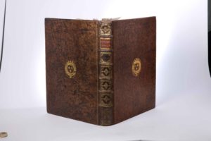 [RELIURE AUX ARMES]. [ATLAS COMPOSITE]. [BEAULIEU (Sébastien de) Les glorieuses conquestes de Louis le Grand roy de France et de Navarre dediées au roy.]. [Paris, l'auteur, vers 1694]. In-folio, veau brun époque, dos à 6 nerfs, pièce de titre maroquin havane sans doute renouvelée, caissons fleurdelysés, triple filet bordant les plats avec armes dorées au centre, le tout doré, roulette dorée aux coupes et chasses, tranches dorées (frottements au dos, un caisson manquant en queue, grossières restaurations au dos, coiffe de tête et coins, tomaisons grattée; qq. rouss. ordinaires très modérées). Précieux recueil, très probablement constitué pour l'usage du Grand Condé, dont les armes figurent sur la reliure. Il renferme principalement des planches gravées d'après les dessins du cartographe Sébastien de Pontault de Beaulieu, qui constitueront ultérieurement le recueil connu sous le nom de « Grand Beaulieu ». Il se compose de 107 planches gravées sur cuivre. Parmi cellesci, 88 sont des plans et profils de villes, dont 72 sont assurément de Beaulieu, les autres d'une facture similaire mais restant à identifier; et de 19 planches de cartes et plans d'autres éditeurs dont Jaillot, Visscher, De Fer. Parmi ces dernières, celles qui sont datée sont parues entre 1669 et 1677. (Liste des planches sur demande). L'exemplaire est relié aux armes de Louis II de Bourbon, prince de Condé, dit le Grand Condé. Celui-ci meurt en 1686, soit près de 10 ans avant la parution du premier recueil réunissant les planches de Beaulieu en un atlas, vers 1694. Beaulieu lui-même disparaît en 1674, et Mireille Pastoureau nous apprend qu'une partie de ces planches ont été gravées de son vivant. Il est donc probable que ce recueil ait été constitué pour le Grand Condé, sans doute appartenant à un ensemble de volumes plus étendu, comme l'indique la mention de tomaison grattée au dos. (Pastoureau, p. 37 sq.)