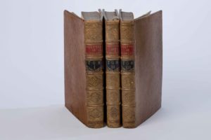 RABELAIS (François) Oeuvres. Avec des remarques historiques et critiques de M. Le Duchat. À Amsterdam, chez Jean Frédéric Bernard, 1741. 3 vol. in-4, veau fauve moucheté époque, dos à 5 nerfs, pièces de titre et de tomaison rouges et noires, caissons ornés, roulette dorée aux coupes, tranches jaspées, des coiffes restaurées (qq. frottements, rouss. éparses modérées). La plus belle des éditions de Rabelais au XVIIIe siècle, dont l'illustration se compose de: un très beau frontispice allégorique avec le portrait de l'auteur en médaillon, au tome 2; un titre gravé par Picard répété aux tomes 1 et 3; un portrait de l'auteur par Tanjé, 12 figures par Du Bourg, 3 vues de la Devinière, et une carte dépliante, une figure gravée de la Bouteille, 12 vignettes et 12 culs-de-lampe. PROVENANCE John H. Torriano (ex-libris armorié gravé XIXe s.)