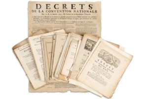 [MARINE] Réunion de publications juridiques officielles (édits, lois, règlements, etc.) relatives à la Marine, ainsi que quelques-unes concernant les pêches et les colonies. 1746-1829. Ensemble de 50 pièces (+ 2 incomplètes) imprimées. La plupart sont au format in-4°, quelques-unes in-8° ou petit in-folio, et l'une d'elles est un placard. Dans un portefeuille moderne demi-percaline à coins bordeaux, dos muet, rabats et lacets. Etat d'ensemble très convenable