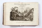 [ATLAS]. LE ROUGE (Georges-Louis) Atlas nouveau portatif à l'usage des militaires et du voyageur... À Paris, chez Le Rouge, [1756]. In-4, veau havane époque (rel. très usée mais solide; mouill. angulaire en début de vol., taches claires au titre gravé, qq. salissures sans gravité). Première partie (seule) de cet atlas, consacrée à la géographie générale (une seconde partie consacrée exclusivement au domaine germanique viendra la compléter en 1759). Elle est composée de: [1] f. (titre gravé double), VI p. (avertissement), [1] f., 36 p. (Introduction à la géographie, dont le titre daté de 1756), 91 planches doubles gravées sur cuivre, dont 90 cartes aux limites coloriées, et la dernière montrant des pavillons de navigation en noir, et [1] feuillet de table