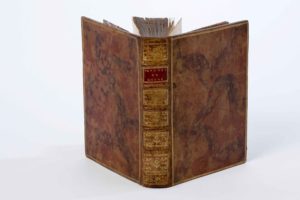 LONGUS / Les amours pastorales de Daphnis et Chloé... À Paris, Imprimé pour les Curieux, 1757. In-4, VIII-269 p., [1] f. blanc, front., [29] pl., veau écaille époque, dos à 5 nerfs, pièce de titre rouge, caissons ornés, triple filet doré bordant les plats, double filet aux coupes, roulette intérieure, tranches dorées, coiffes restaurées (3 coins frottés). Cette édition reproduit les figures de la célèbre édition parisienne de 1718 dite du Régent, que Philippe d'Orléans, Régent de France, avait fait exécuter, et dont il avait fait graver les estampes par Benoit Audran, d'après les peintures que le roman de Longus lui avait inspirées. Cette nouvelle version de l'illustration retouchée et entourée de cadres ornés par Fokke, se compose de: 1 frontispice gravé par Audran d'après Coypel, 29 planches gravées par Audran d'après les dessins du Régent, un fleuron au titre, 8 vignettes par Eisen et 8 culs-de-lampe par Cochin, le tout gravé sur cuivre. La figure dite « des petits pieds » forme la pl. XXII de cette édition, elle n'est pas signée. (Cohen 653)