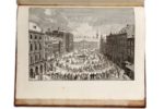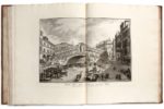 [GRAVURE]. [VENISE]. BRUSTOLONI (GIOVANNI BATTISTA) Prospectuum aedium, viarumque insigniorum Urbis Venetiarum nautico certamine, a nundinis adiectis. [Venise], apud L. Furlanetto, 1763. In folio, demi-veau havane à coins lég. post., dos à 6 nerfs, pièce de titre brune, fleurons et roulettes dorés (défauts dont coiffes découvertes, coins ém., dos frotté; qq. salissures et taches en marge sans gravité; des bruniss. le long de certains plis centraux dues au montage sur onglets; pl. [5] déch. au pli en marge sans manque). Importante suite de vues de Venise gravées sur cuivre par Giovanni Battista Brustoloni, la plupart d'après Antonio Canaletto, certaines d'après Giambattista et Giuseppe Moretti, et quelquesunes sans nom d'artiste. L'ouvrage devait réunir à l'origine 12 planches, ce nombre fut ensuite augmenté jusqu'à 22. Notre exemplaire renferme 21 planches, avant la numérotation et portant l'adresse de Furnaletto. Chaque figure mesure env. 28 x 42 cm. Toutes les planches ne sont pas tirées sur un papier identique, l'on relève certaines planches sur un papier légèrement jaune, et deux types de marques de papetiers: 3 croissants / W surmonté d'un motif floral; et Initiales V et I (?) surmontées de 3 étoiles / Lettre A. Exemplaire enrichi, en fin de volume, de 2 vues d'optique montrant des places de Vienne, gravées d'après d'Erl par J.M. Sicerist, et publiées à Augbourg (brunies); et de 2 autres vues gravées par M. Sichnit à Vienne en 1774, avant la lettre. PROVENANCE Charles d'Oultremont de Wegimont (Belgique; ex-libris typographié)